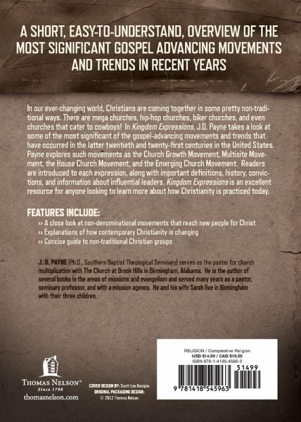 In our changing world how do Christians come together in non-traditional ways? In Kingdom Expressions an expert takes a look at some of the most significant gospel-advancing movements and trends to take place in the latter twentieth and twenty-first centuries in the United States.