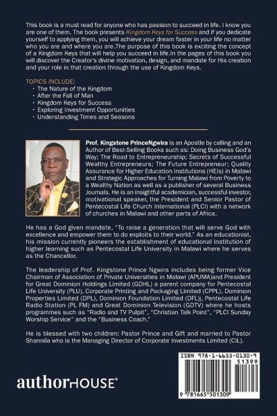This book is a must read for anyone who has passion to succeed in life. I know you are one of them. The book presents Kingdom Keys for Success and if you dedicate yourself to applying them, you will achieve your dream faster in your life no matter who you are and where you are.The purpose of this book is exciting the concept of a Kingdom Keys that will help you succeed in life.In the pages of this book you will discover the Creator's divine motivation, design, and mandate for His creation and your role in that creation through the use of Kingdom Keys. TOPICS INCLUDE: The Nature of the Kingdom After the Fall of Man Kingdom Keys for Success Exploring Investment Opportunities Understanding Times and Seasons