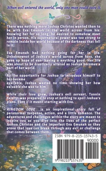 Inspired by a vivid dream, Kingdom Love is a timeless fantasy of hope, sacrifice, and redemption. When Eva is deceived and taken from the radiant kingdom of Shamayin, she becomes lost in a world of shadows and lies. But Prince Joshua sets out on a perilous quest to bring her back-risking everything to restore her identity and remind her of the love that never let her go. A powerful allegory of grace, Kingdom Love is a moving tale of light overcoming darkness.
