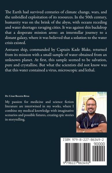 The Earth had survived centuries of climate change, wars, and the unbridled exploitation of its resources. In the 50th century, humanity was on the brink of the abyss, with oceans receding and water shortages ravaging cities. It was against this backdrop that a desperate mission arose: an interstellar journey to a distant galaxy, where it was believed that a solution to the water crisis existed. Astraeus ship, commanded by Captain Kade Blake, returned from its mission with a small sample of water obtained from an unknown planet. At first, this sample seemed to be salvation, pure and crystalline. But what the scientists did not know was that this water contained a virus, microscopic and lethal.