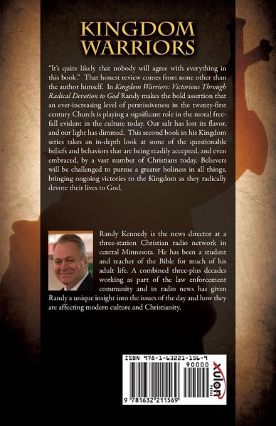 "It's quite likely that nobody will agree with everything in this book." That honest review comes from none other than the author himself. In Kingdom Warriors: Victorious Through Radical Devotion to God Randy makes the bold assertion that an ever-increasing level of permissiveness in the twenty-first century Church is playing a significant role in the moral free-fall evident in the culture today. Our salt has lost its flavor, and our light has dimmed. This second book in his Kingdom series takes an in-depth look at some of the questionable beliefs and behaviors that are being readily accepted, and even embraced, by a vast number of Christians today. Believers will be challenged to pursue a greater holiness in all things, bringing ongoing victories to the Kingdom as they radically devote their lives to God. Randy Kennedy is the news director at a three-station Christian radio network in central Minnesota. He has been a student and teacher of the Bible for much of his adult life. A combined three-plus decades working as part of the law enforcement community and in radio news has given Randy a unique insight into the issues of the day and how they are affecting modern culture and Christianity.