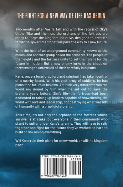 The fight for a new way of life has begun. Two months after Vash's fall, and with the return of Sky's Uncle Mike and his men, the orphans of the fortress are ready to forge the kingdom initiative, designed to create a territorial government that will pave the way to a new future. With the help of an underground community known as the moles, and another group called the preserve, the people of the heights and the fortress unite to set their plans for the future in motion. But a new enemy lurks in the shadows, threatening to unravel all of their carefully laid plans. Kane, once a local drug lord and criminal, has taken control of a nearby island. With his vast army of soldiers, he has plans for a future of his own. A future very different from the world envisioned by Sim when he set out to save the orphans years before. Sim's life-the fortress-had been dedicated to raising up leaders capable of reawakening the world with love and leadership, not destroying what was left of humanity with a cruel dictatorship. This time, it's not only the orphans of the fortress whose survival is at stake, but everyone in their community who stand to suffer under Kane's tyranny. They will have to rally together and fight for the future they've worked so hard to build or risk losing everything. Will Kane ruin their plans for a new world, or will the kingdom rise?