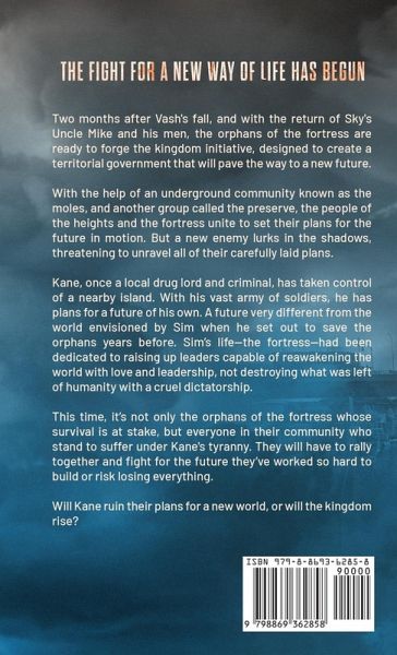 The fight for a new way of life has begun. Two months after Vash's fall, and with the return of Sky's Uncle Mike and his men, the orphans of the fortress are ready to forge the kingdom initiative, designed to create a territorial government that will pave the way to a new future. With the help of an underground community known as the moles, and another group called the preserve, the people of the heights and the fortress unite to set their plans for the future in motion. But a new enemy lurks in the shadows, threatening to unravel all of their carefully laid plans. Kane, once a local drug lord and criminal, has taken control of a nearby island. With his vast army of soldiers, he has plans for a future of his own. A future very different from the world envisioned by Sim when he set out to save the orphans years before. Sim's life-the fortress-had been dedicated to raising up leaders capable of reawakening the world with love and leadership, not destroying what was left of humanity with a cruel dictatorship. This time, it's not only the orphans of the fortress whose survival is at stake, but everyone in their community who stand to suffer under Kane's tyranny. They will have to rally together and fight for the future they've worked so hard to build or risk losing everything. Will Kane ruin their plans for a new world, or will the kingdom rise?