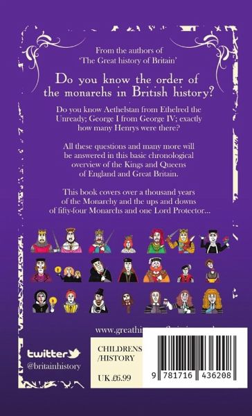 Do you know Aethelstan from Ethelred the Unready; George I from George IV; exactly how many Henrys were there? All these questions and many more will be answered in this basic chronological overview of the Kings and Queens of England and Great Britain. This book covers over 1000 years of the Monarchy and the ups and downs of 55 Monarchs and 1 Lord Protector.