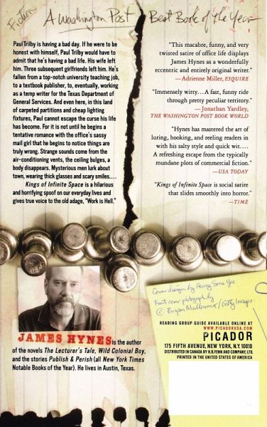 "Immensely witty...thoroughly entertaining."--The Washington Post Book World Paul Trilby is having a bad day. If he were to be honest with himself, Paul Trilby would have to admit that he's having a bad life. His wife left him. Three subsequent girlfriends left him. He's fallen from a top-notch university teaching job, to a textbook publisher, to, eventually, working as a temp writer for the Texas Department of General Services. And even here, in this land of carpeted partitions and cheap lighting fixtures, Paul cannot escape the curse his life has become. For it is not until he begins a tentative romance with the office's sassy mail girl that he begins to notice things are truly wrong. Strange sounds come from the air conditioning vents, the ceiling bulges, a body disappears. Mysterious men lurk about town, wearing thick glasses and pocket protectors... Kings of Infinite Space is a hilarious and horrifying spoof on our everyday lives and gives true voice to the old adage, "Work is Hell."