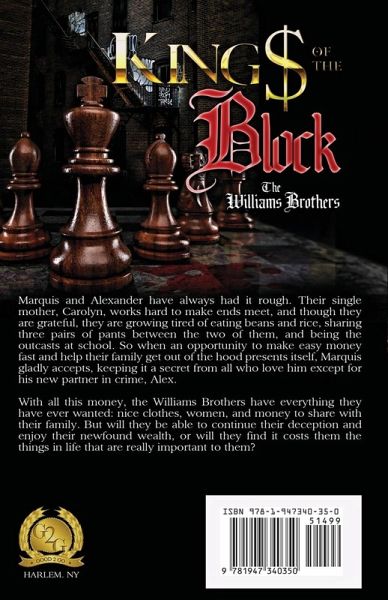 Marquis and Alexander have always had it rough. Their single mother, Carolyn, works hard to make ends meet, and though they are grateful, they are growing tired of eating beans and rice, sharing three pairs of pants between the two of them, and being the outcasts at school. So when an opportunity to make easy money fast and help their family get out of the hood presents itself, Marquis gladly accepts, keeping it a secret from all who love him except for his new partner in crime, Alex. With all this money, the Williams Brothers have everything they have ever wanted: nice clothes, women, and money to share with their family. But will they be able to continue their deception and enjoy their newfound wealth, or will they find it costs them the things in life that are really important to them?