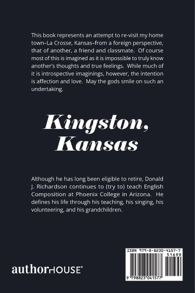 This book represents an attempt to re-visit my home town-La Crosse, Kansas-from a foreign perspective, that of another, a friend and classmate. Of course most of this is imagined as it is impossible to truly know another's thoughts and true feelings. While much of it is introspective imaginings, however, the intention is affection and love. May the gods smile on such an undertaking.