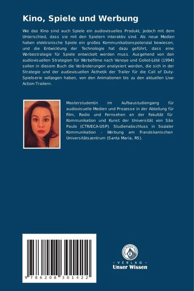 Wie das Kino sind auch Spiele ein audiovisuelles Produkt, jedoch mit dem Unterschied, dass sie mit den Spielern interaktiv sind. Als neue Medien haben elektronische Spiele ein großes Kommunikationspotenzial bewiesen, und die Entwicklung der Technologie hat dazu geführt, dass eine Werbestrategie für Spiele entwickelt werden muss. Ausgehend von den audiovisuellen Strategien für Werbefilme nach Vanoye und Goliot-Lété (1994) sollen in diesem Buch die Veränderungen analysiert werden, die sich in der Strategie und der audiovisuellen Ästhetik der Trailer für die Call of Duty-Spielserie vollzogen haben, von den Animationen bis zu den aktuellen Live-Action-Trailern.