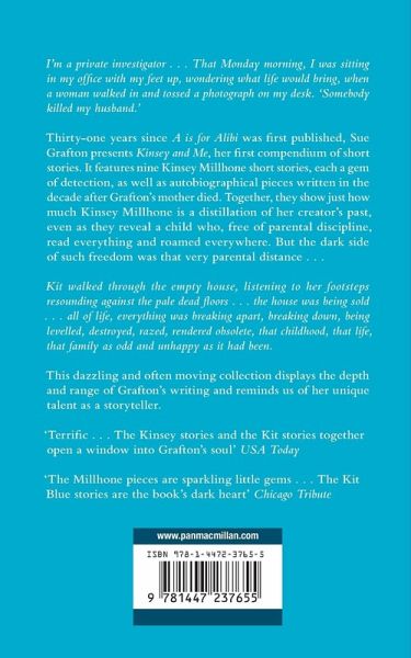 In 1982, Sue Grafton introduced us to private investigator Kinsey Millhone and the Alphabet series. Now Kinsey is an established international icon and Sue, a number-one bestselling author. To mark this achievement, Sue has written short stories that reveal Kinseyâ s origins and Sueâ s past.