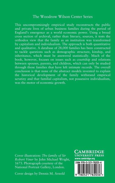 This uncompromisingly empirical study reconstructs the public and private lives of urban business families during the period of England's emergence as a world economic power. Using a broad cross-section of archival, rather than literary, sources, it tests the orthodox view that the family as an institution was transformed by capitalism and individualism. The approach is both quantitative and qualitative. A database of 28,000 families has been constructed to tackle questions such as demographic structure, kinship and inheritance, which must be answered statistically. Much of the book, however, focuses on issues such as courtship and relations among spouses, parents and children, which can only be studied through those families that have left intimate records. The overall conclusion is that none of the abstract models invented to explain the historical development of the family withstand empirical scrutiny and that familial capitalism, not possessive individualism, was the motor of economic growth.