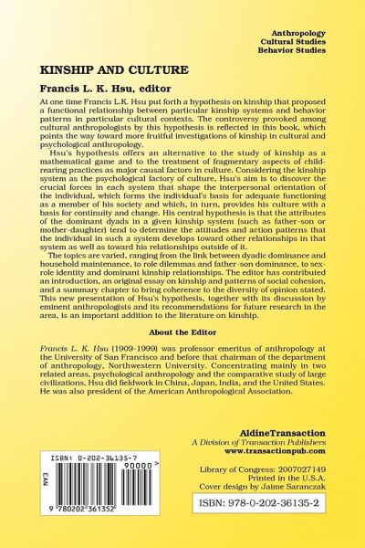 At one time Francis L.K. Hsu put forth a hypothesis on kinship that proposed a functional relationship between particular kinship systems and behavior patterns in particular cultural contexts. The controversy provoked among cultural anthropologists by this hypothesis is reflected in this book, which points the way toward more fruitful investigations of kinship in cultural and psychological anthropology. Hsu's hypothesis offers an alternative to the study of kinship as a mathematical game and to the treatment of fragmentary aspects of child-rearing practices as major causal factors in culture. Considering the kinship system as the psychological factory of culture, Hsu's aim is to discover the crucial forces in each system that shape the interpersonal orientation of the individual, which forms the individual's basis for adequate functioning as a member of his society and which, in turn, provides his culture with a basis for continuity and change. His central hypothesis is that the attributes of the dominant dyads in a given kinship system (such as father-son or mother-daughter) tend to determine the attitudes and action patterns that the individual in such a system develops toward other relationships in that system as well as toward his relationships outside of it. The topics are varied, ranging from the link between dyadic dominance and household maintenance, to role dilemmas and father-son dominance, to sex-role identity and dominant kinship relationships. The editor has contributed an introduction, an original essay on kinship and patterns of social cohesion, and a summary chapter to bring coherence to the diversity of opinion stated. This new presentation of Hsu's hypothesis, together with its discussion by eminent anthropologists and its recommendations for future research in the area, is an important addition to the literature on kinship.