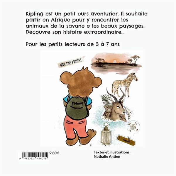 Kipling est un petit ours aventurier. Il souhaite partir en Afrique pour y rencontrer les animaux de la savane e les beaux paysages. Découvre son histoire extraordinaire... Pour les petits lecteurs de 3 à 7 ans