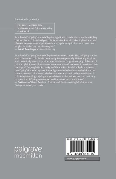 Kipling's Imperial Boy opens by examining the significance of boyhood in the evolution of European modernity. Chapter one shows how closely the figure of the adolescent (the 'boy') is associated with questions of imperial expansion and consolidation. The chapters that follow take up Rudyard Kipling's fiction of the imperial boy, emphasizing the imaginative link between adolescence and cultural hybridity and offering detailed readings of The Jungle Book, Stalky & Co ., and Kim.