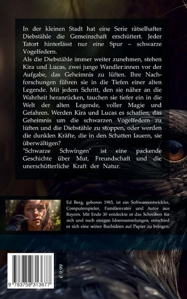 In der kleinen Stadt, die bis vor kurzem noch ein friedliches Dasein führte, hat eine Reihe mysteriöser Diebstähle die Gemeinschaft tief erschüttert. Jeder Einbruch hinterlässt dieselbe unheimliche Signatur: schwarze Vogelfedern. In "Schwarze Schwingen" entfalten sich Geheimnisse, Magie und ein Kampf gegen dunkle Mächte durch die Augen von Kira und Lucas, zwei jungen Wandler:innen, die fest entschlossen sind, die Wahrheit hinter den unerklärlichen Vorfällen zu enthüllen.Ihre Reise führt sie in die verborgene Welt der Wandler:innen, wo sie auf den sagenumwobenen Stab der Vögel stoßen - ein mächtiges Artefakt, das die Fähigkeit besitzt, Vögel zu kontrollieren und für finstere Zwecke zu missbrauchen. Als sie entdecken, dass der Stab in den Händen einer skrupellosen Person ist, deren Durst nach Reichtum keine Grenzen kennt, beginnt ein Wettlauf gegen die Zeit. Kira und Lucas müssen ihre eigenen Fähigkeiten und das Wissen der Gemeinschaft nutzen, um den Stab zurückzugewinnen und die Stadt vor weiterem Unheil zu bewahren."Schwarze Schwingen" ist mehr als nur ein Fantasyroman; es ist eine tiefe Erforschung der Verbindung zwischen Mensch und Natur, Freundschaft und Verantwortung. Du wirst in eine Welt entführt, in der die Grenzen zwischen dem Realen und dem Magischen verschwimmen, und in der jede Entscheidung das Schicksal der ganzen Gemeinschaft beeinflussen kann.Kira und Lucas sind nicht nur Protagonist:innen; sie sind Symbole der Hoffnung und des Mutes, die zeigen, dass selbst in den dunkelsten Zeiten das Licht der Menschlichkeit niemals erlischt. Ihre Reise ist gespickt mit Spannung, emotionalen Wendungen und tiefen Einblicken in das Herz des Mysteriums, das sie umgibt.Begleite Kira und Lucas auf ihrem atemberaubenden Abenteuer und entdecke, was es wirklich bedeutet, für das Gute zu kämpfen. "Schwarze Schwingen" wartet darauf, seine Geschichte mit dir zu teilen, eine Geschichte, die so unvergesslich ist, dass du noch lange nach dem Zuschlagen des Buches in dir nachhallen wird. Bist Du bereit, Deine Flügel auszubreiten und in ein Abenteuer zu fliegen, das Du nie vergessen wirst?