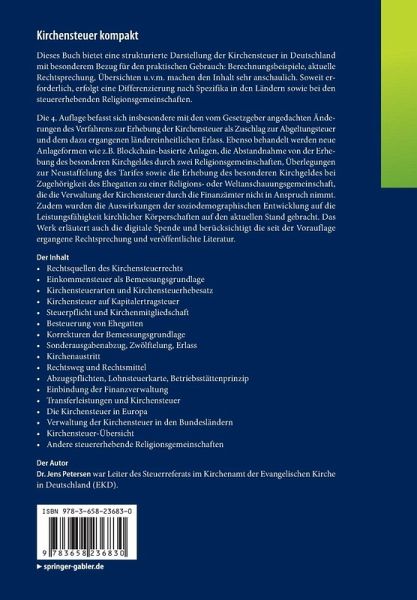 Dieses Buch bietet eine strukturierte Darstellung der Kirchensteuer in Deutschland mit besonderem Bezug für den praktischen Gebrauch: Berechnungsbeispiele, aktuelle Rechtsprechung, Übersichten u.v.m. machen den Inhalt sehr anschaulich. Soweit erforderlich erfolgt eine Differenzierung nach Spezifika in den Ländern sowie bei den steuererhebenden Religionsgemeinschaften.