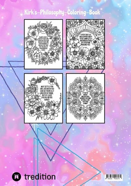 This isn't your typical coloring book-it's a homage to the unsung heroe of television, specifically that unforgettable side character who never quite got the spotlight he deserved. In this case, it's about Kirk, whose quirky, endearing, and totally offbeat philosophy on life now takes center stage. Imagine a world where Kirk's peculiar wisdom is revered and his unique perspective is treated as a guide to self-care and inner peace, or just the way Kirk would do it. Each page is a (totally made up) deep (and sometimes ridiculous) meditation (ok lets just call it a phrase) on how Kirk might navigate life's most mundane and profound challenges-like "What Would Kirk Do?" but with flowers.Every mantra (...ok it's a simple phrase), adorned in intricate floral frames, offers "Kirkisms" that can be colored, framed, and displayed proudly on your wall. These are no ordinary platitudes; they're the unexpected life advice you never knew you needed, filled with paradox, humor, and just enough truth to make you laugh and think. With a healthy dose of self-care and self-irony, Kirk's "wisdoms" might actually help you find a little more joy, or at the very least, something to laugh about.In short, this is the coloring book for anyone seeking zen in the absurd.