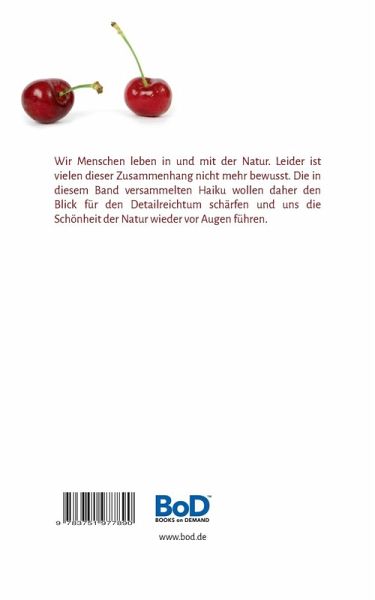 Wir Menschen leben in und mit der Natur. Leider ist vielen dieser Zusammenhang nicht mehr bewusst. Die in diesem Band versammelten Haiku wollen daher den Blick für den Detailreichtum schärfen und uns die Schönheit der Natur wieder vor Augen führen.