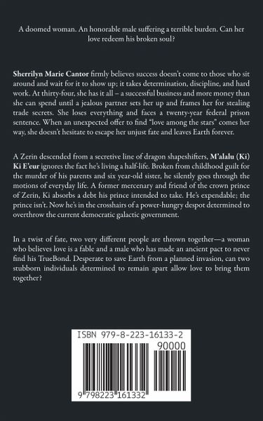A doomed woman. An honorable male suffering a terrible burden. Can her love redeem his broken soul? Earth's fate rests in the hands of shape-shifting dragons, studly aliens, and a determined woman who demands a say in her own fate. In this exciting finale of the An Alien Exchange trilogy, follow their adventures across the galaxy to a tale that features mounting action, stimulating passion, and heart-pounding emotions. Sherrilyn Marie Cantor firmly believes success doesn't come to those who sit around and wait for it to show up; it takes determination, discipline, and hard work. At thirty-four, she has it all – a successful business and more money than she can spend until a jealous partner sets her up and frames her for stealing trade secrets. She loses everything and faces a twenty-year federal prison sentence. When an unexpected offer to find "love among the stars" comes her way, she doesn't hesitate to escape her unjust fate and leaves Earth forever. A Zerin descended from a secretive line of dragon shapeshifters, M'alalu (Ki) Ki E'eur ignores the fact he's living a half-life. Broken from childhood guilt for the murder of his parents and six-year-old sister, he silently goes through the motions of everyday life. A former mercenary and friend of the crown prince of Zerin, Ki absorbs a debt his prince intended to take. He's expendable; the prince isn't. Now he's in the crosshairs of a power-hungry despot determined to overthrow the current democratic galactic government. In a twist of fate, two very different people are thrown together—a woman who believes love is a fable and a male who has made an ancient pact to never find his TrueBond. Desperate to save Earth from a planned invasion, can two stubborn individuals determine to remain apart allow love to bring them together? Check out Ki's Redemption – the action-packed finale of the Alien Exchange trilogy that one reader sums up as: "You know it works when you have a big smile on your face as you read the last sentence in a book! And I'm grinning like a fool!"