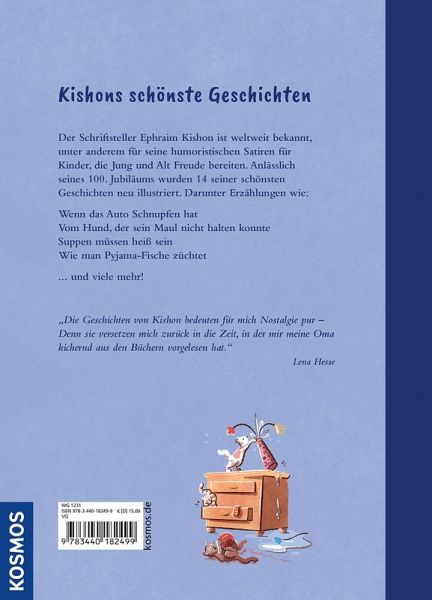 Zeitlos, aktuell und immer lustig: Die unverwechselbaren Geschichten des großen Satirikers Ephraim Kishon! "Wie man Pyjama-Fische züchtet", "Warum Suppen heiß sein müssen", "Wie Kaffeetassen für Linkshänder aussehen sollten", "Was Herkules mit den sieben Kätzchen anstellt", "Was passiert, wenn ein Hund einfach nicht still sein will": Das Kishon-Vorlesebuch mit vielen Geschichten aus dem Alltag, die zum Nachdenken und Lachen anregen. Die bearbeitete Neuauflage des Erzählbands "Wenn das Auto Schnupfen hat" erscheint anlässlich des 100. Geburtstags des Autors. Für Groß und Klein ein riesiger (Vor-)Lesespaß.