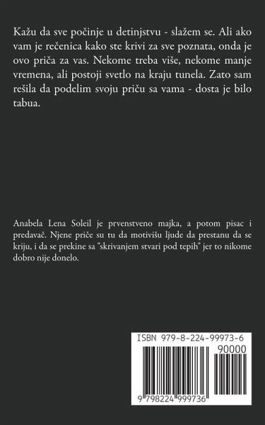 Käu da sve po¿inje u detinjstvu - släem se. Ali ako vam je re¿enica kako ste krivi za sve i kako ste najgori poznata, onda je ovo pri¿a za vas. Jer postoji svetlo na kraju tunela, samo treba strpljenja i godina. Moja pri¿a je upravo o tome i ne stidim se da je podelim sa vama. Dosta je bilo skrivanja.