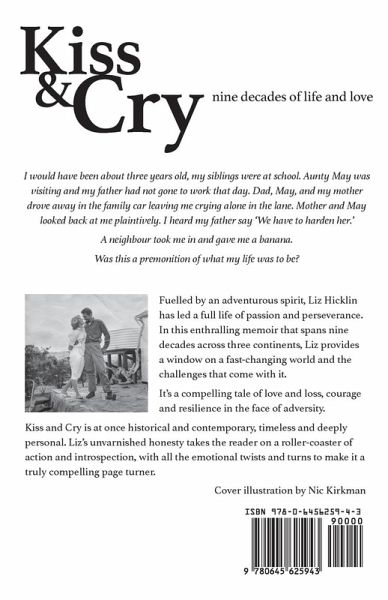 I would have been about three years old, my siblings were at school. Aunty May was visiting and my father had not gone to work that day. Dad, May, and my mother drove away in the family car leaving me crying alone in the lane. Mother and May looked back at me plaintively. I heard my father say 'We have to harden her.' A neighbour took me in and gave me a banana. Was this a premonition of what my life was to be Fuelled by an adventurous spirit, Liz Hicklin has led a full life of passion and perseverance. In this enthralling memoir that spans nine decades across three continents, Liz provides a window on a fast-changing world and the challenges that come with it. It's a compelling tale of love and loss, courage and resilience in the face of adversity. Kiss and Cry is at once historical and contemporary, timeless and deeply personal. Liz's unvarnished honesty takes the reader on a roller-coaster of action and introspection, with all the emotional twists and turns to make it a truly compelling page turner.