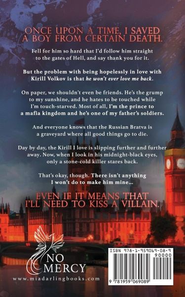 Once upon a time, I saved a boy from certain death. Fell for him so hard that I'd follow him straight to the gates of Hell, and say thank you for it. But the problem with being hopelessly in love with Kirill Volkov is that he won't ever love me back. On paper, we shouldn't even be friends. He's the grump to my sunshine and he hates to be touched while I'm touch-starved. Most of all, I'm the prince to a mafia kingdom and he's one of my father's soldiers. And everyone knows that the Russian Bratva is a graveyard where all good things go to die. Day by day, the Kirill I love is slipping further and further away. Now, when I look in his midnight-black eyes, only a stone-cold killer stares back. That's okay, though. There isn't anything I won't do to make him mine... Even if it means that I'll need to kiss a villain. KISS A VILLAIN is a friends to enemies to lovers Mafia MM Romance. Buckle up because the ride is angsty, twisted, and filled with so much longing. This is Book 1 in the No Mercy Duet. Yarik & Kirill's story concludes in Kiss of Death, which will release later this year.