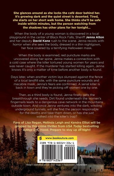 She glances around as she locks the café door behind her. It's growing dark and the quiet street is deserted. Tired, she starts on her short walk home. She thinks she'll be safe inside within minutes, but the person watching from the shadows has other plans for her tonight... When the body of a young woman is discovered in a local playground in the center of Black Rock Falls, Sheriff Jenna Alton and her deputy David Kane rush to the scene. Jenna recoils with horror when she sees the body, dressed in a thin nightgown, her face covered by a terrifying Halloween mask. When the body is examined, red puncture marks are uncovered along her spine. Jenna makes a connection with a cold case where the killer tortured young women for years and was never caught. If the murderer has started killing again, Jenna knows it's only a matter of time before another body is found. Days later, when another victim lays slumped against the fence of a local landfill site, with the same puncture wounds and macabre mask, Jenna's fears are confirmed. A serial killer is back in town and they're picking off women one by one. Then, as a third body is found, Jenna finally gets the breakthrough she needs. Dirt found underneath the women's fingernails leads to a dangerous cave network in the mountains outside town. And once Jenna ventures into the dark, winding underground tunnels, will she find the person responsible for the deaths and take them down, or has she just walked into the killer's trap? Fans of Lisa Regan, Melinda Leigh and Kendra Elliot will be gripped by this crime thriller from USA Today bestselling author D.K. Hood. Prepare to stay up all night! **Each Kane and Alton book can be read as part of the series or as a standalone** What readers are saying about Kiss Her Goodnight: "Left me chilled to the bone... Must-read in this gripping and very addictive series." NetGalley reviewer, 5 stars "Exceptional... My word, I couldn't put this down... Compulsive reading and I couldn't stop and had to read to the end." NetGalley reviewer, 5 stars "Wow... Amazing... Fantastic... Bone chilling." B for Bookreview, 5 stars "Great book!... Filled with suspense, intrigue and great detective work... Highly recommended." NetGalley reviewer, 5 stars "A five-star read." Goodreads reviewer, 5 stars "Gripping... I was hooked... On the edge of my seat." NetGalley reviewer What readers are saying about D.K. Hood: "Oh my, oh my God... This is another cracking story!!!... This author really deserves the title of Queen of Suspense... She had chills running down my spine and I just couldn't stop reading. Incredibly, mind-blowingly brilliant!" B for Bookreview, 5 stars "What a fantastic book it is. Totally addictive. I couldn't turn the pages fast enough." Goodreads reviewer, 5 stars