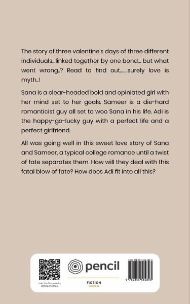 The story of three valentine's days of three different individuals...linked together by one bond... but what went wrong..? Read to find out.......surely love is myth..! Sana is a clear-headed bold and opiniated girl with her mind set to her goals. Sameer is a die-hard romanticist guy all set to woo Sana in his life. Adi is the happy-go-lucky guy with a perfect life and a perfect girlfriend. All was going well in this sweet love story of Sana and Sameer, a typical college romance until a twist of fate separates them. How will they deal with this fatal blow of fate? How does Adi fit into all this?