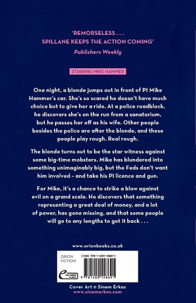 Born Frank Morrison Spillane in Brooklyn, New York City, Mickey Spillane started writing while at high school. During the Second World War, he enlisted in the Army Air Corps and became a fighter pilot and instructor. After the war, he moved to South Carolina. He was married three times, the third time to Jane Rogers Johnson, and had four children and two stepchildren. He wrote his first novel, I, the Jury (1947), in order to raise the money to buy a house for himself and his first wife, Mary Ann Pearce. The novel sold six and a half million copies in the United States, and introduced Spillane's most famous character, the hardboiled PI Mike Hammer. The many novels that followed became instant bestsellers, until in 1980 the US all-time fiction bestseller list of fifteen titles boasted seven by Mickey Spillane. More than 225 million copies of his books have sold internationally. He was uniformly disliked by critics, owing to the high content of sex and violence in his books. However, he was later praised by American mystery writers Max Alan Collins and William L. DeAndrea, as well as artist Markus Lüpertz. The novelist Ayn Rand, a friend of Spillane's, appreciated the black-and-white morality of his books. Spillane was an active Jehovah's Witness. He died in 2006.