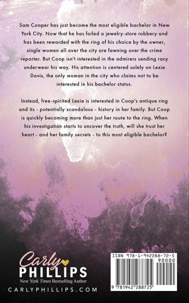 Sam Cooper has just become the most eligible bachelor in New York City. Now that he has foiled a jewelry-store robbery and has been rewarded with the ring of his choice by the owner, single women all over the city are fawning over the crime reporter. But Coop isn't interested in the admirers sending racy underwear his way. His attention is centered solely on Lexie Davis, the only woman in the city who claims not to be interested in his bachelor status. Instead, free-spirited Lexie is interested in Coop's antique ring and its — potentially scandalous — history in her family. But Coop is quickly becoming more than just her route to the ring. When his investigation starts to uncover the truth, will she trust her heart — and her family secrets — to this most eligible bachelor?