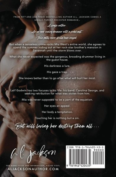 A Falling Stars stand-alone novel from NYT and USA Today best-selling author A. L. Jackson.... A single mother. An up-and-coming drummer with a sordid past. Their paths never should have crossed. But when a senseless crime rocks Mia West's entire world, she agrees to spend the summer hiding out at her rock-star brother's mansion in Savannah until the storm blows over. What she never expected was the gorgeous, brooding drummer living in the guest house. His darkness a lure. His gaze a trap. She knows better than to go after what will hurt her most. Leif Godwin has two focuses in his life: his band, Carolina George, and seeking retribution for what was stolen from him. Mia was never supposed to be a part of the equation. Her eyes an appeal. Her body a temptation. Touching her is nothing but a sin. But will loving her destroy them all....