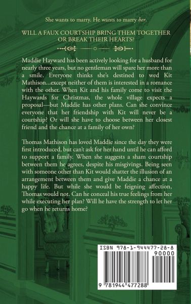 She wants to marry. He wants to marry her. Will a faux courtship bring them together or break their hearts? Maddie Hayward has been actively looking for a husband for nearly three years, but no gentleman will spare her more than a smile. Everyone thinks she's destined to wed Kit Mathison...except neither of them is interested in a romance with the other. When Kit and his family come to visit the Haywards for Christmas, the whole village expects a proposal-but Maddie has other plans. Can she convince everyone that her friendship with Kit will never be a courtship? Or will she have to choose between her closest friend and the chance at family of her own? Thomas Mathison has loved Maddie since the day they were first introduced, but can't ask for her hand until he can afford to support a family. When she suggests a sham courtship between them he agrees, despite his misgivings. Being seen with someone other than Kit would shatter the illusion of an arrangement between them and give Maddie a chance at a happy life. But while she would be feigning affection, Thomas would not. Can he conceal his true feelings from her while executing her plan? Will he have the strength to let her go when he returns home? This short (1-2 hour read) novel is a kisses-only Regency romance with a happily ever after, no cliffhangers, and is part of a series that can be read in any order.