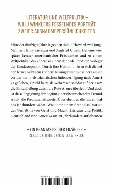 Im Sommer 1955 treffen auf dem Campus der Harvard University zwei Überlebende aufeinander: Henry Kissinger, der 1938 vor der Judenverfolgung noch rechtzeitig nach Amerika entkam, und Siegfried Unseld, der als Soldat Adolf Hitlers in den Krieg gegen die Sowjetunion gezogen war und sich in Sewastopol nur retten konnte, indem er aufs offene Meer hinausschwamm. Im International Seminar in Harvard, das der aufstrebende Professor Kissinger für kommende Größen aus aller Welt veranstaltet, beginnen beide, ihre Netzwerke zu knüpfen, die ihnen den weiteren Aufstieg ermöglichen werden - Kissinger zum Berater Nixons und zu einem Weltpolitiker, Unseld zu einem der bedeutendsten Verleger der Bundesrepublik. Durch ihre Herkunft hätten sich beide nicht ferner sein können - doch bleiben sie über die Literatur miteinander verbunden.