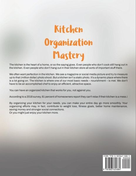The kitchen is the heart of a home, or so the saying goes. Even people who don't cook still hang out in the kitchen. Even people who don't hang out in their kitchen store all sorts of important stuff there.We often want perfection in the kitchen. We see a magazine or social media picture and try to measure up to that (million dollar) photo shoot. But a kitchen isn't a static photo. It's a dynamic place where there is a lot going on. The kitchen is where one of our most basic needs - nourishment - is met. We don't have to be an accomplished chef to enjoy an efficient, attractive space.You can have an organized kitchen that works for you, not against you.According to a 2018 survey, 81 percent of homeowners report they can't relax if their kitchen is a mess.iBy organizing your kitchen for your needs, you can make your entire day go more smoothly. Your organizing efforts may, in fact, contribute to weight loss, fitness goals, better home maintenance, saving money and stronger social connections.Or you might just enjoy your kitchen more.
