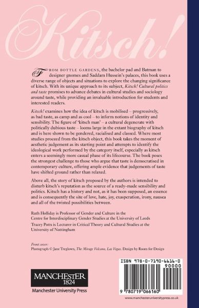 From bottle gardens, batman and the bachelor pad to garden gnomes and monogamy spray, this book uses a range of objects to explore the meanings and uses of kitsch. An accessible, comprehensive introduction for students and informed readers, it adds to debates on taste in cultural theory and sociology and provides a review of the literature. -- .
