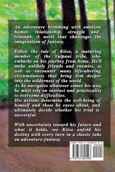 An adventure brimming with emotion, humor, relationship, struggle and triumph. A novel that challenges the imagination of fantasy. Follow the tale of Kitso, a maturing member of the Vulpani tribe, who embarks on his journey from home. He'll make unlikely friends and enemies, as well as encounter life-altering circumstances that bring him deeper into the wilderness of the world. As he navigates whatever comes his way, he must rely on instinct and practicality to overcome difficulties. His actions will determine the well-being of himself and those he cares about, and ultimately decide whether his trial is successful. With uncertainty toward his future and what it holds, see Kitso unfold his destiny with every turn in a classic take on adventure-fantasy.