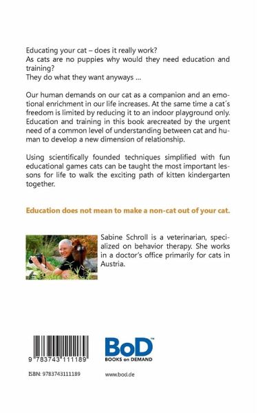 Our human demands on our cat as a companion and an emotional enrichment in our life increases. At the same time a cat s freedom is limited by reducing it to an indoor playground only. Education and training in this book arecreated by the urgent need of a common level of understanding between cat and human to develop a new dimension of relationship.