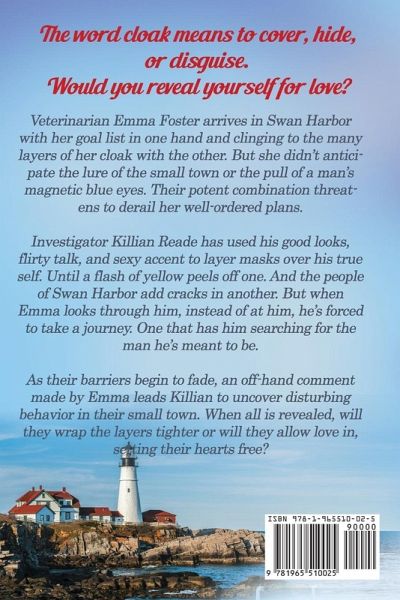 Enjoy this steamy, small-town romantic suspense series with a sense of family, and let the power of love sweep you away.The word cloak means to cover, hide, or disguise. Would you shed yours and expose your heart for love? Veterinarian Emma Foster arrives in Swan Harbor with her goal list in one hand and clinging to the many layers of her cloak with the other. But she didn't anticipate the lure of the small town or the pull of a man's magnetic blue eyes. Their potent combination threatens to derail her well-ordered plans. Investigator Killian Reade has used his good looks, flirty talk, and…mehr