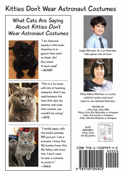 Beans, a Polydactyl cat, teaches kids the differences between cats and dogs-with the chief one being that cats don't like to wear costumes. Beans gives examples of costumes cats won't wear from A (astronaut) to Z (zombie) in this humorous A-to-Z picture book illustrated by an 8-year-old. Beans also lets his class know that dressing up can be fun for kids, but that being themselves is the most important lesson of all. Well, that, and always feed their cats treats!¿