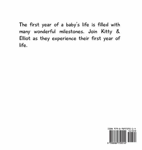 The first year of a baby's life is filled with many wonderful milestones. Join Kitty & Elliot as they experience their first year of life in this wonderfully adorable storybook.