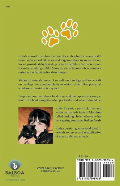 In today's world, cats have become obese; they have so many health issues, we've veered off course and forgotten that cats are carnivores. So we provide dehydrated, processed pebbles that do not even resemble anything edible. Many cats have become obese zombies, eating out of habit rather than hunger. We are all animals. Some of us walk on four legs, and some walk on two legs. For mind and body to achieve their fullest potential, wholesome nutrition is required. People are confused about food in general but especially about pet food. This book simplifies what pet food is and what it should be.