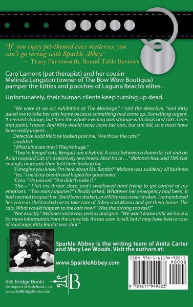 Caro Lamont—pet therapist—and her cousin Melinda Langston—owner of The Bow Wow Boutique—pamper the kitties and pooches of Laguna Beach’s elites. Unfortunately, their human clients keep turning up dead. "We were at an art exhibition at The Montage," I told the detective, "and Kitty asked me to take her cats home because something had come up. Something urgent. It seemed strange, but then the whole evening was strange with dogs and cats. Ones that paint, I mean. And Kitty would never leave her cats, but she did, so it must have been really urgent . . ." Detective Judd Malone looked past me. "Are those the cats?" I nodded. "What kind are they? They’re huge." "They’re Bengal cats. Bengals are a hybrid. A cross between a domestic cat and an Asian Leopard Cat. It’s a relatively new breed. Most have . . ." Malone’s face said TMI. Fair enough, more info than he’d been looking for. "I imagine you know I’m here about Ms. Bardot?" Malone was suddenly all business. "Yes." I held my breath and hoped for good news. "Caro." He paused. "She didn’t make it." "She—" I felt my throat close, and I swallowed hard trying to get control of my emotions. "Too many injuries?" I finally asked. Whatever her emergency had been, it had seemed to upset her. She’d been shaken, and Kitty was never shaken. I remembered her voice as she’d asked me to take care of Tobey and Minou and get them home. The cats. What would happen to the cats now? "Was she driving too fast?" "Not exactly." Malone’s voice was serious and grim. "We won’t know until we have a lot more information from the crime lab. It’s too soon to tell, but it may have been a case of road rage. Kitty Bardot was shot." Sparkle Abbey is the pseudonym of two mystery authors (Mary Lee Woods and Anita Carter). They are friends and neighbors as well as co-writers of the Pampered Pets Mystery Series. The Pen name was created by combining the names of their rescue pets – Sparkle (Mary Lee’s cat) and Abbey (Anita’s dog). They reside in central Iowa, but if they could write anywhere, you would find them on the beach with their laptops and depending on the time of day, with either an iced tea or a margarita. Visit them at www.sparkleabbey.com.
