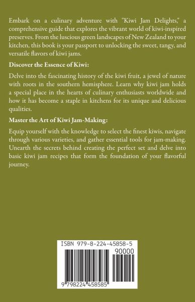 Embark on a culinary adventure with "Kiwi Jam Delights," a comprehensive guide that explores the vibrant world of kiwi-inspired preserves. From the luscious green landscapes of New Zealand to your kitchen, this book is your passport to unlocking the sweet, tangy, and versatile flavors of kiwi jams. Discover the Essence of Kiwi: Delve into the fascinating history of the kiwi fruit, a jewel of nature with roots in the southern hemisphere. Learn why kiwi jam holds a special place in the hearts of culinary enthusiasts worldwide and how it has become a staple in kitchens for its unique and delicious qualities. Master the Art of Kiwi Jam-Making: Equip yourself with the knowledge to select the finest kiwis, navigate through various varieties, and gather essential tools for jam-making. Unearth the secrets behind creating the perfect set and delve into basic kiwi jam recipes that form the foundation of your flavorful journey.