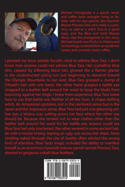 Michael Ostrogorsky is a parrot, word, and coffee bean wrangler living in Seattle, with his two parrots, the Hyacinth Macaw Princess Tara, who really is a princess, as well as a witch (but in a good way), and the Blue and Gold Macaw Aboo. Like the protagonist in this story, Michael boasts two Ph.D.s, in History and Archaeology, is retired from an academic career, and currently roasts coffee.