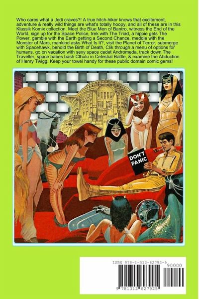 Who cares what a Jedi craves?! A true hitch-hiker knows that excitement, adventure and really wild things are what's totally hoopy, and all of these are in this collection of Klassik Komix. Meet the Blue Men of Bantro, witness the End of the World, sign up for the Space Police, trek with The Triad, a hippie gets The Power, gamble with the Earth getting a Second Chance, meddle with the Monster of Mars, mankind asks What Is It?, visit the Planet of Terror, submerge with Spacehawk, behold the Birth of Death, Clik through a menu of options for humans, go on vacation with space cadet Andromeda, track down The Traveller, space babes bash Cthulu in Celestial Battle, and examine the Abduction of Henry Twigg. Keep your towel handy for these public domain gems from the Golden Age of Comics! 100 Big Pages