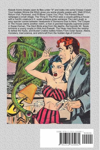 Klassik Komix breaks open its files under "X" and looks into some Creepy Cases! Your hostess Winnie the Witch gives you some ghostly scares with: Web Of Evil, Return Visit, Partners!, and I'll Never Leave You. Plus: The Painted Beast rampages a small village, The Thing In The Pool sees a couple getting a house with a horrific creature in it, super-science gives someone The Last Laugh, a sexy specter comes between newlyweds in Someone Else Is Here, The Corpse In The House claims another victim, a man is granted supreme power in Super-Human, The Devil Birds arise from the depths, the hypnotic Mr. Spyte torments a young couple in Hide And Eeeeek, The Heap rises from the swamp to defeat the Nazis, and Buster Crabbe battles Killers From Outer Space. Aliens, monsters, mad science, and witchcraft from the Golden Age of Comics! 100 Big Pages!