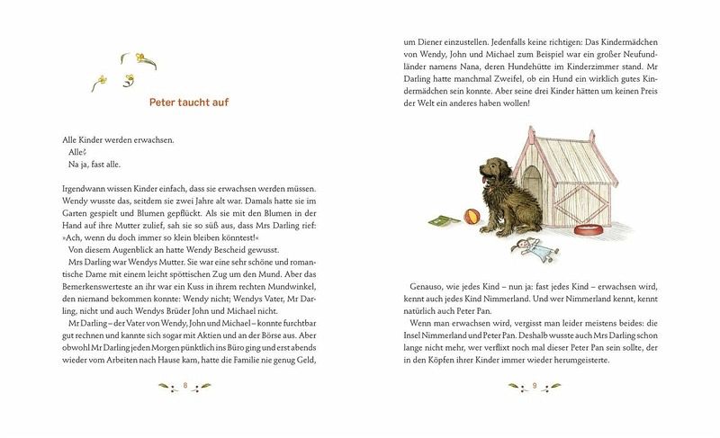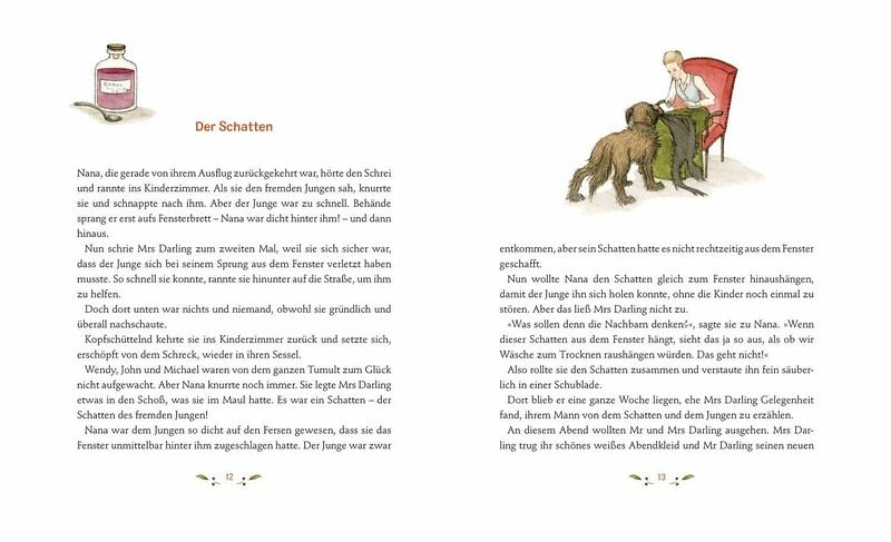 "Kinderbuchautorin Sabine Rahn arbeitete den Klassiker von J. M . Barrie in zeitgerechten Texten neu auf. Verantwortlich für die Bebilderung der Geschichte ist Andrea Offermann. Feine Striche, eine gedeckte und trotzdem bunte Farbwahl sowie der Verzicht auf unnötige Ausschmückungen illustrieren gefühlvoll die wichtigsten Teile der Erzählung." Luna, Mai/Juni 2013