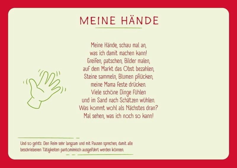 Von leicht verständlichen Bewegungsreimen bis zu liebevollen Mitmach-Versen ist alles dabei, was Sprache fördert und gleichzeitig richtig viel Spaß macht.