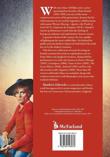 With more than 130 films and a career spanning four decades, Klaus Kinski (1926-1991) was one of the most controversial actors of his generation. Known for his wild tantrums on set and his legendary collaborations with auteur Werner Herzog--Aguirre, the Wrath of God (1972), Nosferatu the Vampyre (1979)--Kinski's intense performances made him the darling of European arthouse and exploitation/horror cinema. A genius in front of the camera, he was capable of lighting up the most risible films. Yet behind his public persona lurked a depraved man who took his art to the darkest extremes. This first ever collection of essays focusing on Kinski examines his work in exploitation and art house films and spaghetti westerns, along with his performances in such cult classics as Doctor Zhivago (1965), Crawlspace (1986), Venus in Furs (1965), The Great Silence (1968), Android (1982) and his only directorial credit, Paganini (1989). More than 50 reviews of Kinski's films are included, along with exclusive interviews with filmmakers and actors who worked with him.