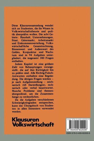 Dieses Obungsbuch wendet sich an Studenten, die ihr Basiswissen in Volkswirtschafts theorie und -politik tiberpriifen wollen. Es werden bei der Aufgabengestaltung Theorie und Anwendungen rniteinander verbunden, so daB auch der an praktischen Problernen in teressierte Leser Nutzen daraus ziehen kann. Fragen und Aufgaben rnogen DenkanstOBe sein, die Antworten zeigen, ob in richtiger Richtung gedacht wurde. Aufgaben und Lo sungen wurden nicht getrennt gedruckt, so daB urnstandliches Blattern verrnieden wird. Der Student rnoge aber der Versuchung widerstehen und nicht die Losung schon lesen, bevor er sich seine Antwort zurechtgelegt hat. Jedern der acht Gebiete wurde eine gro£ere Zahl von Behauptungen vorangestellt, die daraufuin zu priifen sind, ob sie richtig oder falsch sind. Auf diese Weise kann thernatisch eine gro£ere Flache abgedeckt werden als dies durch Aufgaben allein rnoglich ist. Die Richtig/Falsch-Antwort enthalt eine Begriindung. Manche Problerne sind thernentibergreifend. Das ist Absicht, da Zusarnrnenhange erschlos sen werden sollen; das Stichwortregister hilft, weitere Ausflihrungen zurn Fragenkornplex unter anderer Kapiteltiberschrift zu finden. Wichtig erscheinende Fragen wurden von rneh reren Seiten angegangen, hier wird Wert auf den Obungseffekt gelegt. Zahlreiche Darstel lungen wollen die verbalen Ausflihrungen optisch untersttitzen. Dieter Dahl Inhaltsverzeichnis Haushalte Aufgabe I: Grundwissen .... . . . . . . . . . . . . . . . . . . . . . . . . . . . . . . .